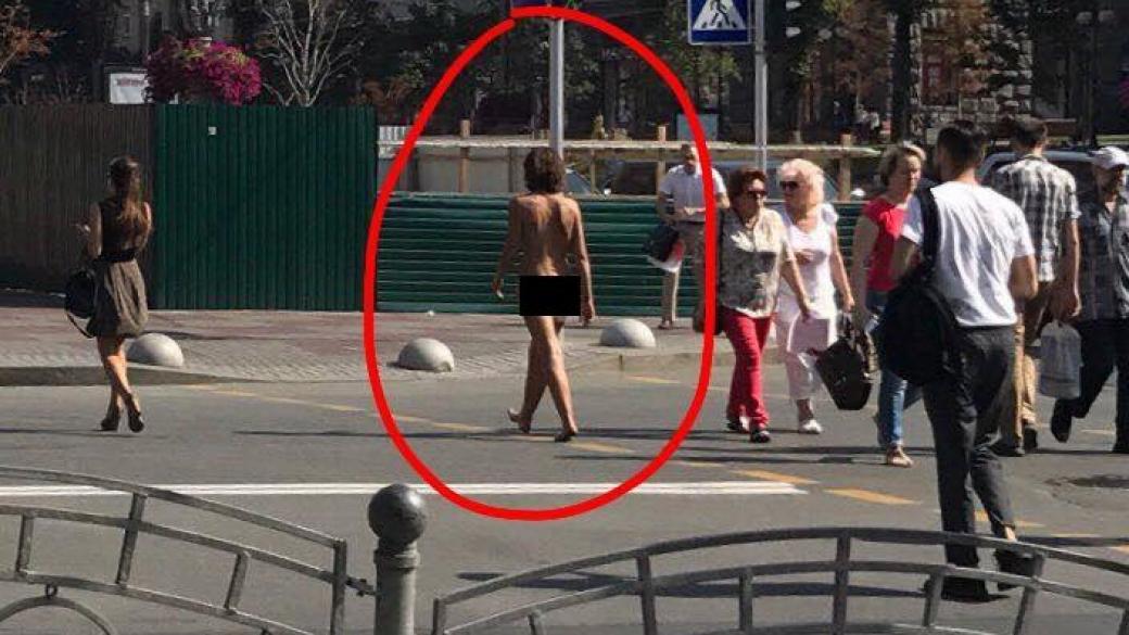 В соцсети выложили фото, на которых видно, как обнаженная девушка спокойно прогуливается по центру Киева, не стесняясь прохожих.