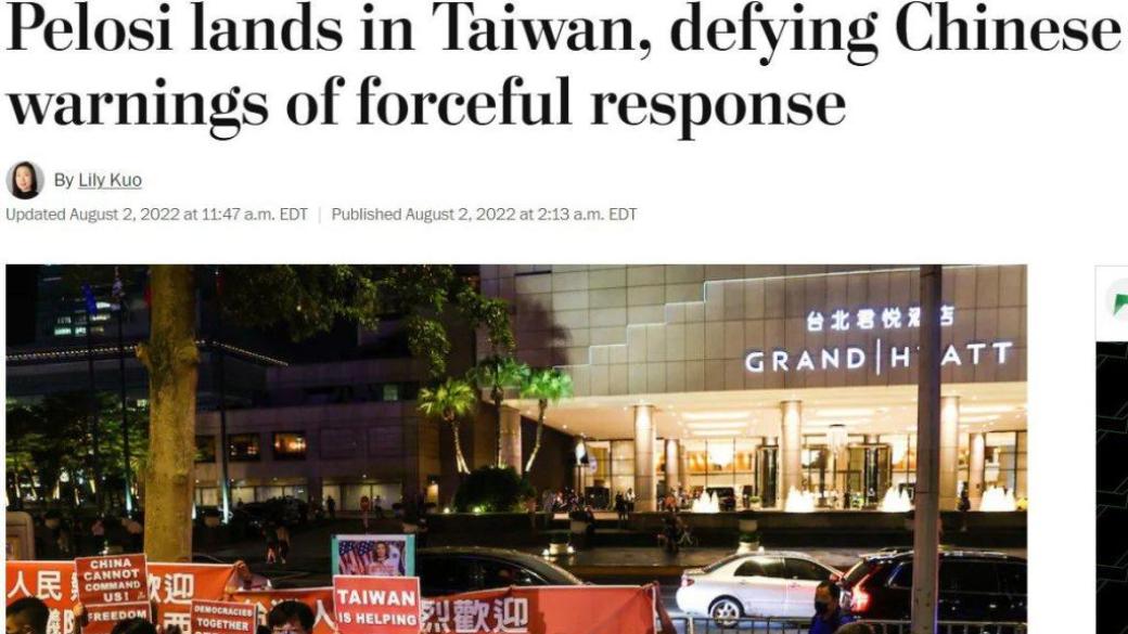 На фоне визита Пелоси Управление морской безопасности Китая распространило уведомление о том, что с 00:00 часов 2 августа до 00:00 часов 6 августа в части акватории Южно-Китайского моря будут проводиться военные учения с боевыми стрельбами.