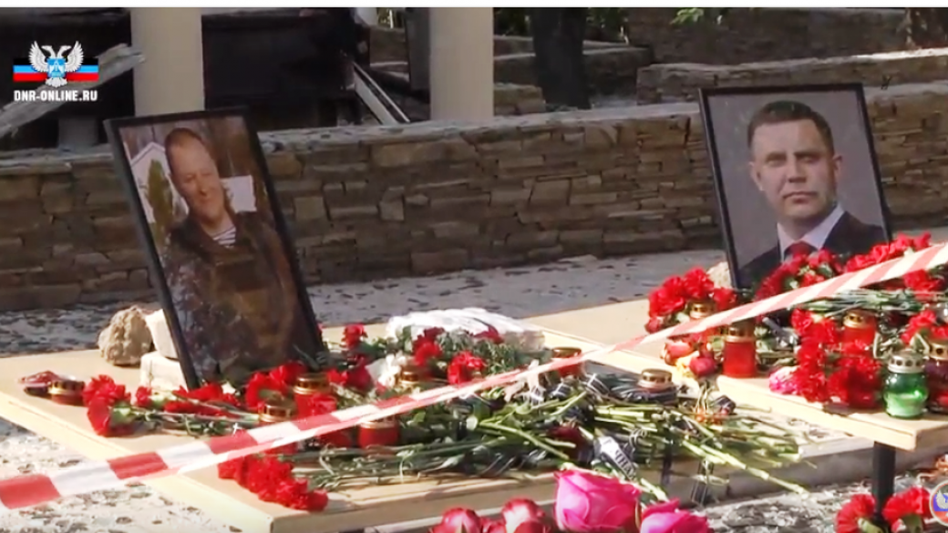 Сегодня в оккупированном Донецке «делегации» из России, Абхазии и Южной Осетии возложили цветы к месту гибели главаря «ДНР» Александра Захарченко.