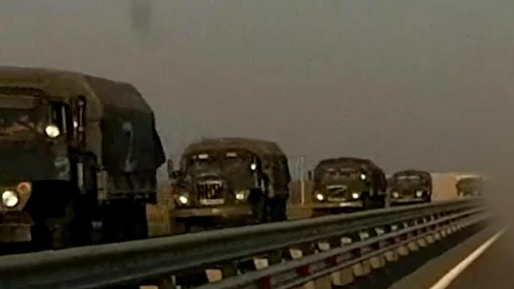 Крымчане отмечают, что военные грузовики марки "Урал", ехали в сопровождении российской госавтоинспекции с проблесковыми маячками. По предварительным данным, колонна была зафиксирована на участке трассы между селом Фонтан Ленинского района и поворотом на пгт Ленино, когда двигалась от Керченского моста в сторону материковой части Украины.