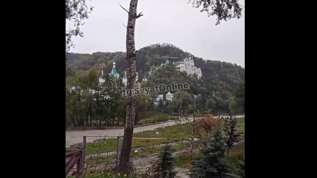 Разбитый Святогорск, на видео виднеется Лавра, так подписал видео ТГ-канал Оперативный Краматорск, опубликовавший видео.