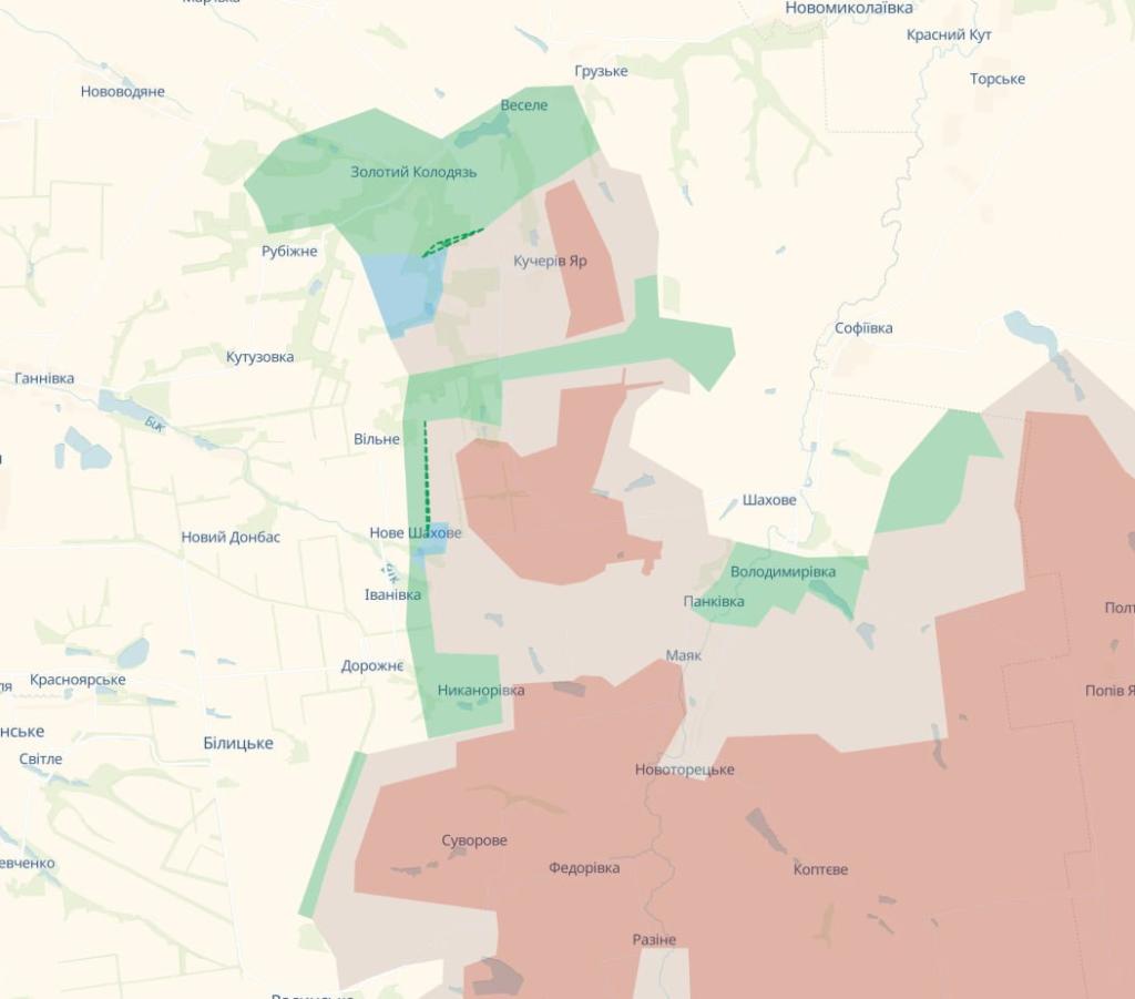 Украинские военные освободили от оккупантов село Новое Шахово и оттеснили противника в районах Никаноровки и Золотого Колодца, сообщают аналитики проекта.