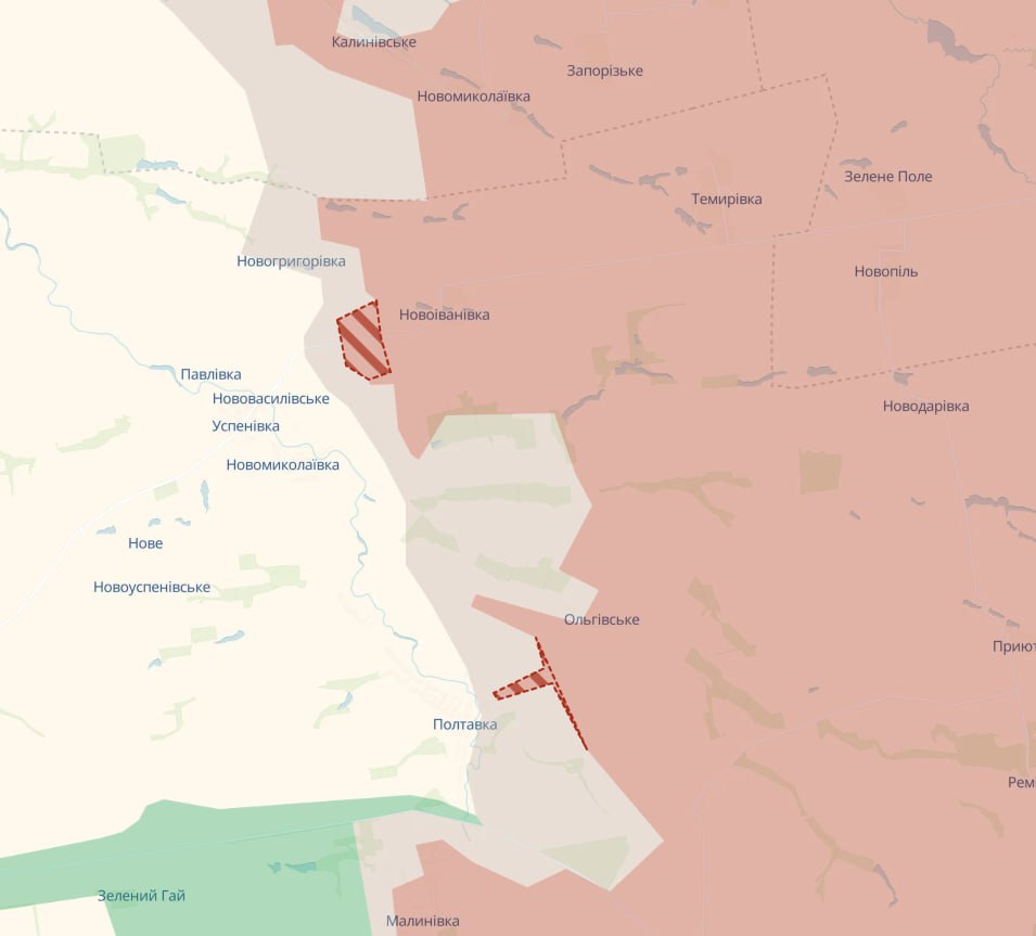 В то же время в Запорожской области войскам рф удалось продвинуться вблизи двух населённых пунктов — Новоивановки и в Полтавке.
