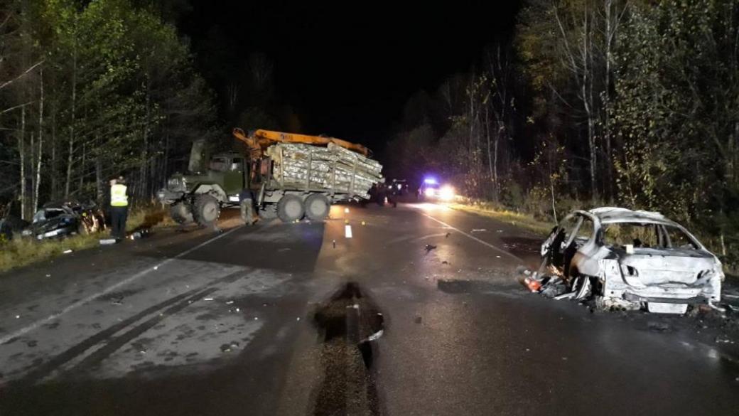 По информации, лесовоз практически раздавил один из автомобилей, а вторая в результате столкновения загорелась. В результате дорожно-транспортного происшествия погибли два человека и один получил травмы. Пострадавший в тяжелом состоянии госпитализирован в травматологическое отделение Сарненской районной больницы.