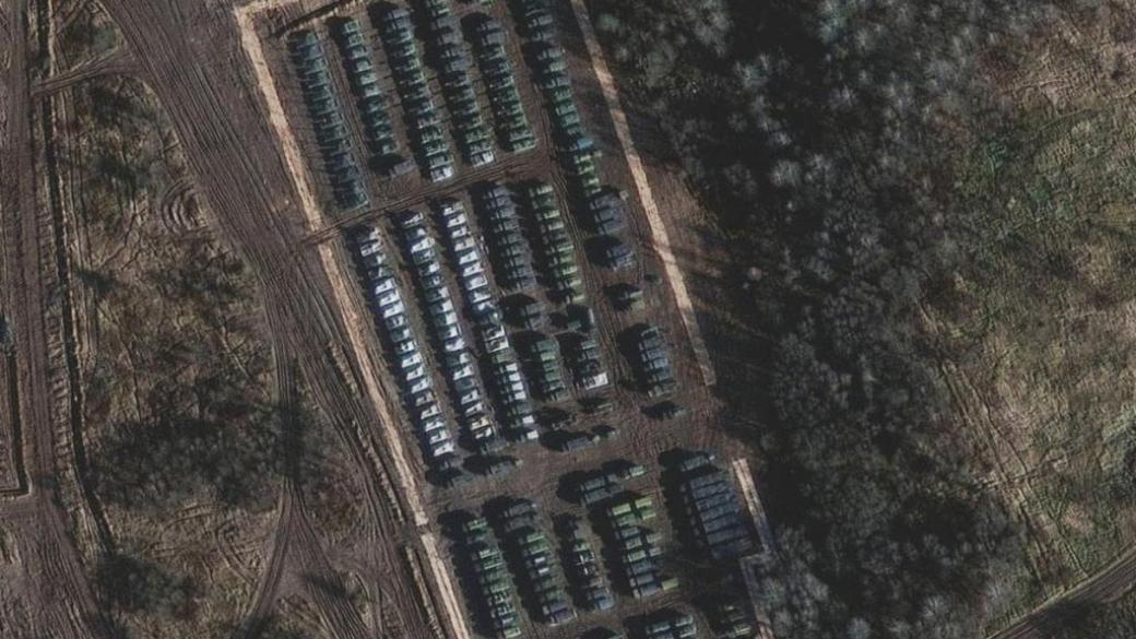 Как уточняет издание, кадры были сделаны в районе российского города Ельня Смоленской области недалеко от границы с Беларусью. Также сообщается, что на снимках зафиксировано скопление бронетанковых частей, танков и самоходной артиллерии вместе с военными.
