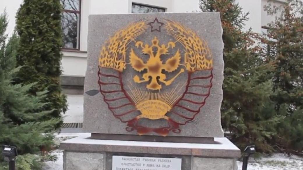 Члены российского мотоклуба «Ночные волки» заявили, что герб, который они предложили президенту России Владимиру Путину в качестве нового официального символа РФ уже установлен в оккупированном Луганске.