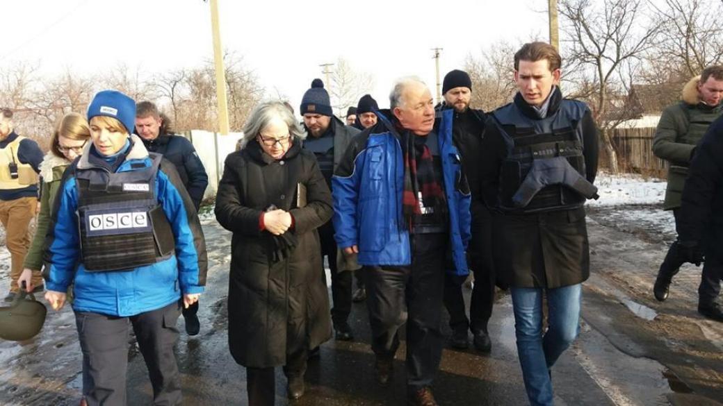 Глава МИД Украины Павел Климкин и новый глава ОБСЕ Себастьян Курц отправились с визитом в село Виноградное Донецкой области.