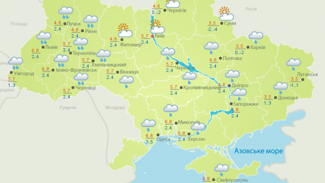 Так, украинские синоптики предупредили о дождях и сильном ветре. Днем в западных областях страны умеренные дожди, в Карпатах, ночью и на северо-востоке страны — мокрый снег.