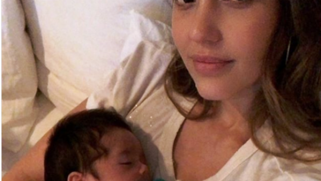 Под фото Альба написала, что все время малыш смотрит с ней сериал Grace and Frankie: «Я на 4 сезоне, и я не хочу, чтобы это заканчивалось».