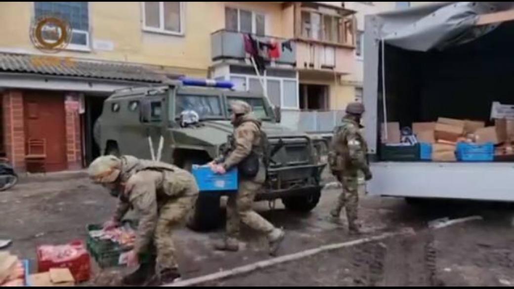 Чеченцы под видом «гуманитарной помощи» от «фонда семьи Кадырова» на самом деле раздают жителям оккупированных городов продукты из разграбленных ими украинских магазинов и захваченных гумконвоев, которые были направлены в Мариуполь и пригороды Киева украинскими властями. Об этом пишет Телеграм канал «Пиковый туз».