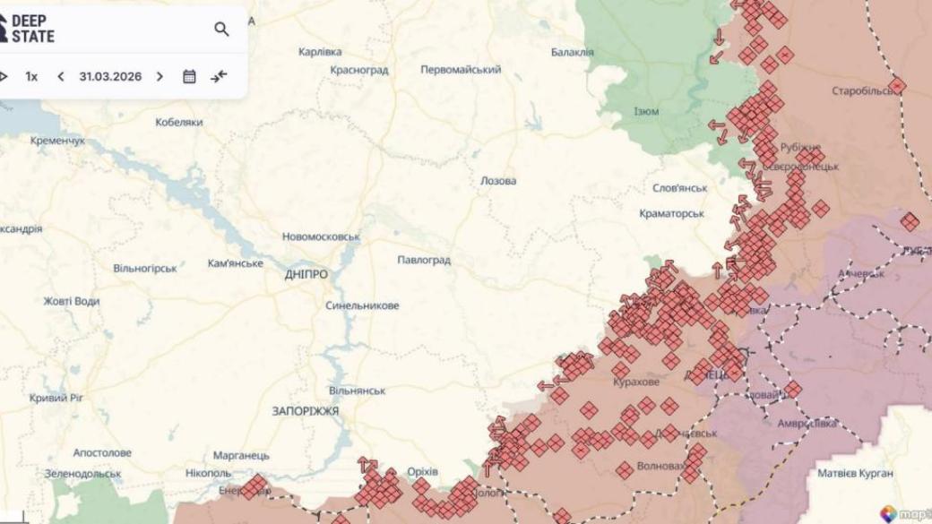 За прошлый месяц войска рф больше всего продвинулись на Гуляйпольском направлении — 24% от захваченных территорий в марте, на Славянском — 19% и Покровском — 5%, на так называемом "Курском", в которые входит приграничье Сумской области, — 13%.