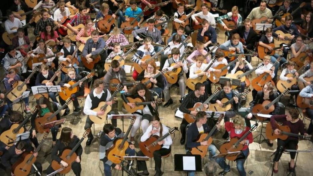 На этот раз, чтобы побить прошлогодний рекорд, в Городском центре культуры собрались 130 гитаристов из Беларуси, России, Украины и Грузии, передает белорусский ресурс onliner.by.