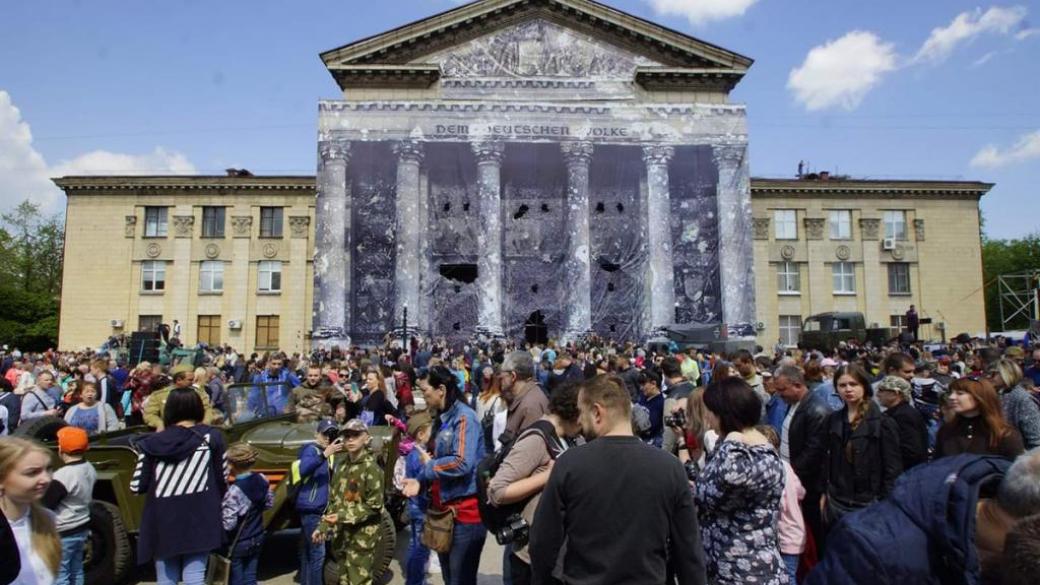 Отмечается, что в качестве Рейхстага выступил Дом техники в неподконтрольном Украине Луганске.