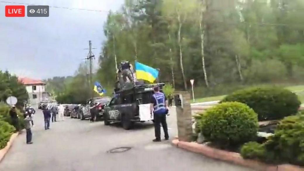 На опубликованных ресурсом фото видны около 10 автомобилей с флагами Украины.