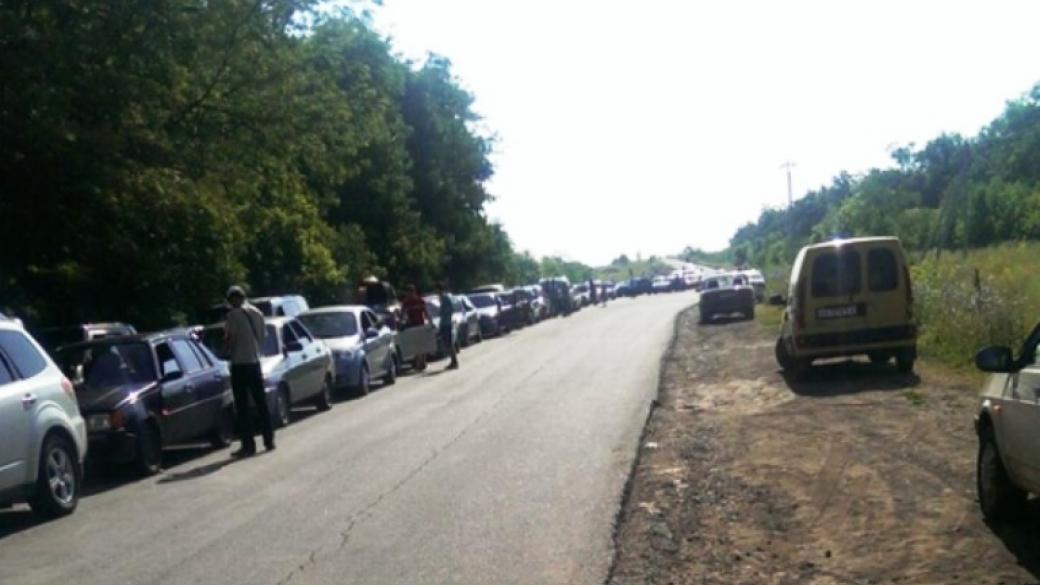 По словам пользователей, на Бахмутском направлении в 08:05 собралось около 200 авто и 300 человек пешей очереди: