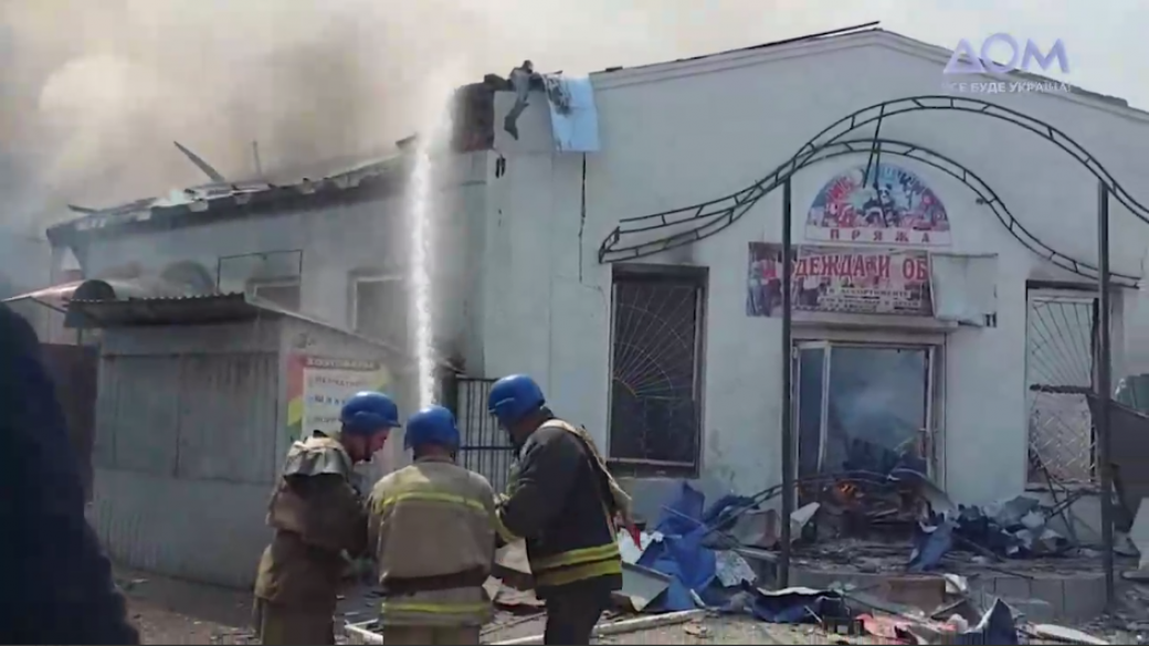 Сегодня днем военные РФ обстреляли Славянск Донецкой области,  в результате чего загорелся городской рынок. На месте работают спасатели ГСЧС Украины.