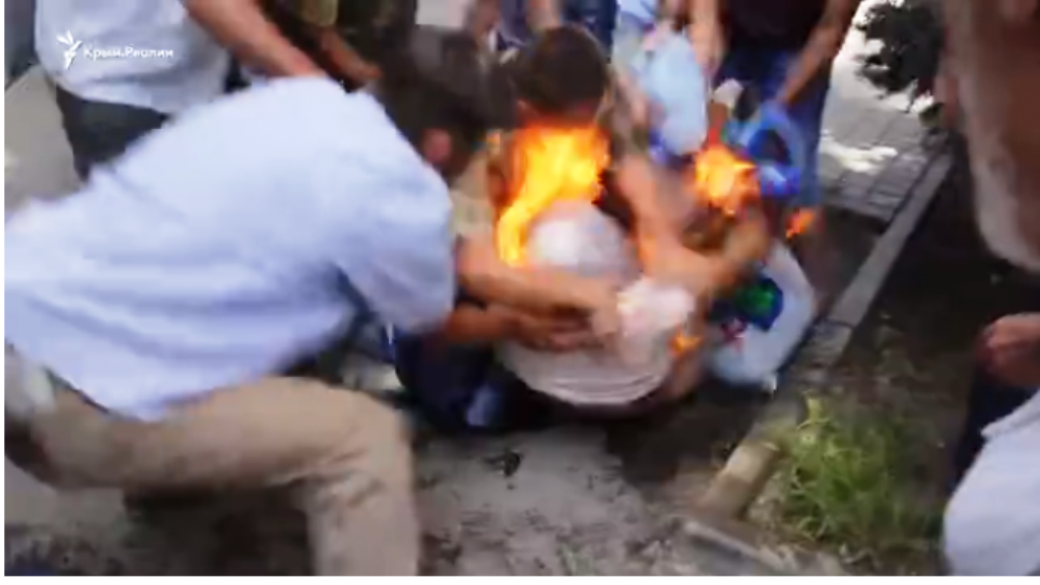 В центре оккупированного Симферополя крымскотатарский активист"поляны протеста" "Стрелецкая" поджег себя.