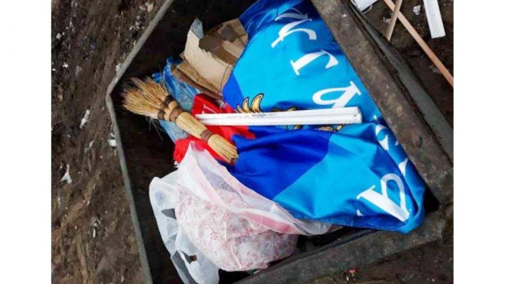 В оккупированном Должанске Луганской области неизвестные сорвали флаг «ЛНР» и выбросили его в мусорный бак.