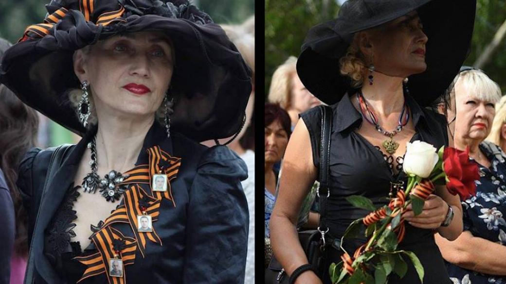 Своим нетривиальным траурным нарядом дама привлекла внимание еще в мае этого года, во время «парада победы» в Донецке. Тогда-то она и получила свое прозвище «черной вдовы».