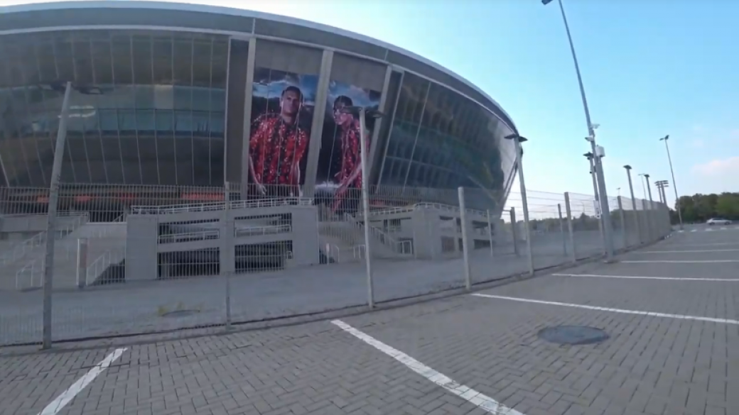 По их словам, они обошли стадион по кругу, обсудили его состояние и отметили, что фан-кафе закрыты и работает только музей. Авторы видео отметили, что основная часть прилегающей к стадиону территории ухожена, однако, часть выглядит заброшенной. Знаки парковки выцвели, также, в нескольких местах видны стеклопакты с большими трещинами, а сами стекла не мыты. Дончане добавляют, что складывается такое ощущение, что время на стадионе остановилось.