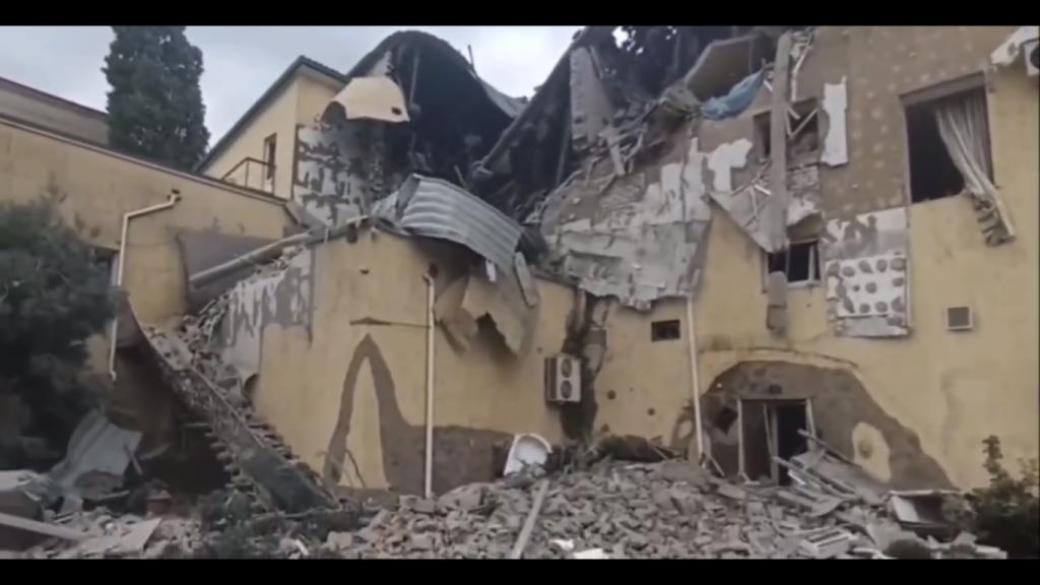 В сети опубликовали видео с последствиями "прилёта" по гостинице Владимира Сальдо в Херсоне, где жили российские военные, том числе и из ФСБ.