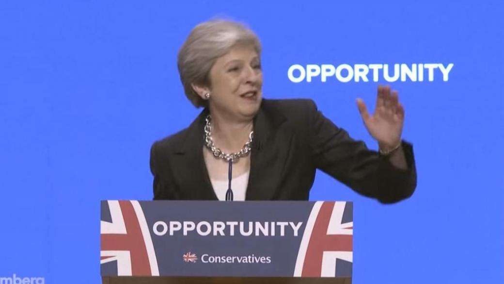 Пританцовывая под композицию шведской группы АВВА «Dancing Queen», Тереза Мэй поднялась на сцену, чтобы выступить перед участниками конференции.