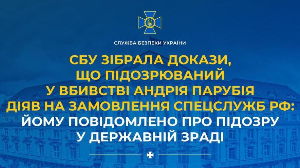 Убийце украинского политика Андрея Парубия объявили подозрение в госизмене, так как он действовал по заказу спецслужб россии. Об этом заявили в пресс-службе СБУ.
