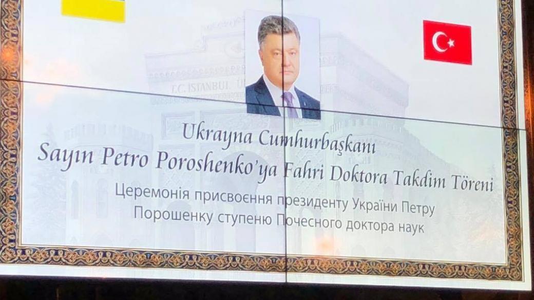 Президент Украины Петр Порошенко сегодня утром прибыл с официальным визитом в Турцию, где уже получил степень почетного доктора Стамбульского университета. Об этом сообщают СМИ,
