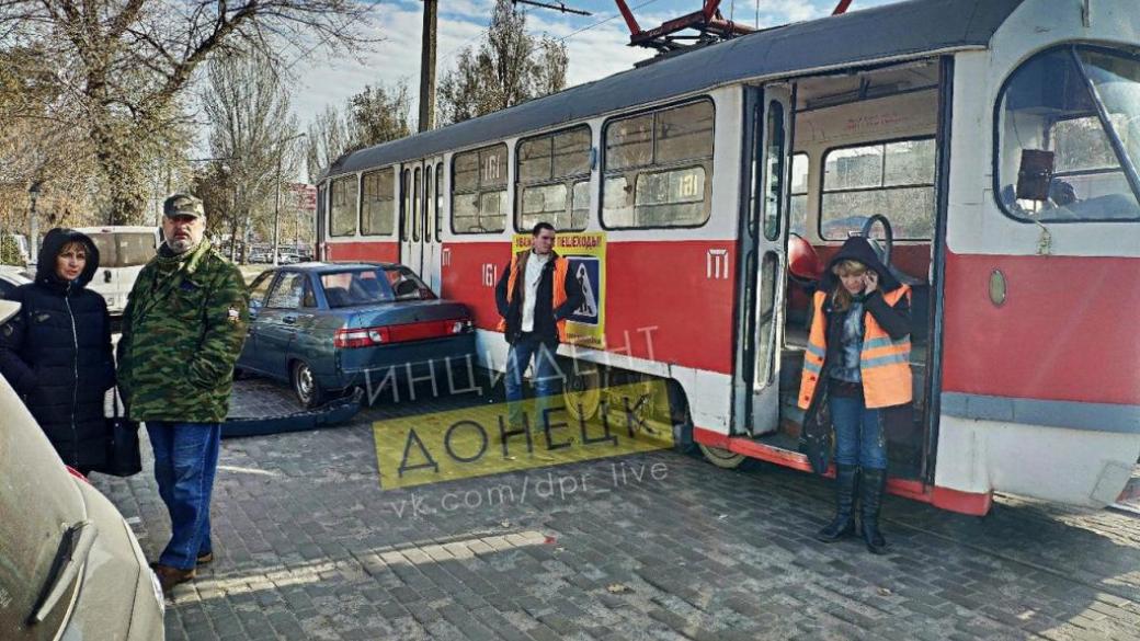 В Кировском районе неподконтрольного Украине Донецке на микрорайоне Текстильщик сегодня произошло ДТП с участием трамвая и легкового автомобиля. Об этом сообщают очевидцы в социальных сетях.