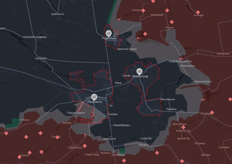 "Очень сильно войска рф давят с Запада в направлении на Гришино, чтобы с одной стороны подойти с юго-запада, а с другой стороны, с северо-востока, там, где бои за Родинское происходят, Красный Лиман, такие активные зоны боев. Они хотят с двух направлений сойтись и захлопнуть этот мешок. Но от выполнения этого намерения они пока очень далеки", - добавил боец.