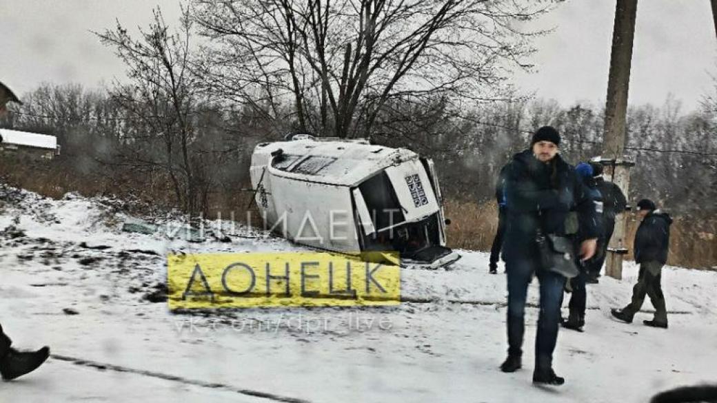 Пользователи публикуют фото перевернувшегося автомобиля миссии и отмечают, что по предварительным данным, жертв и пострадавших нет. Также, местные жители сообщают, что скорее всего, причиной ДТП стала скользкая дорога, так как в ОРДО выпал снег, что уже привело к заторам и авариям.