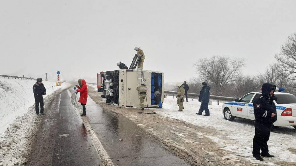 Всего в результате аварии пострадали 17 человек, из которых трое — в тяжелом состоянии, четверо — с повреждениями средней степени тяжести, десять — с легкими повреждениями. ДТП произошло в 12.30 на трассе «Дон» в условиях снегопада. Как отметил водитель транспортного средства, на участке, где перевернулся автобус, было скользко.