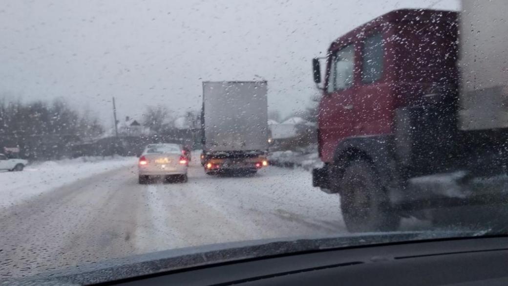«Макеевка. Объездная перед подъемом фуры штук 5, не могут подняться»
