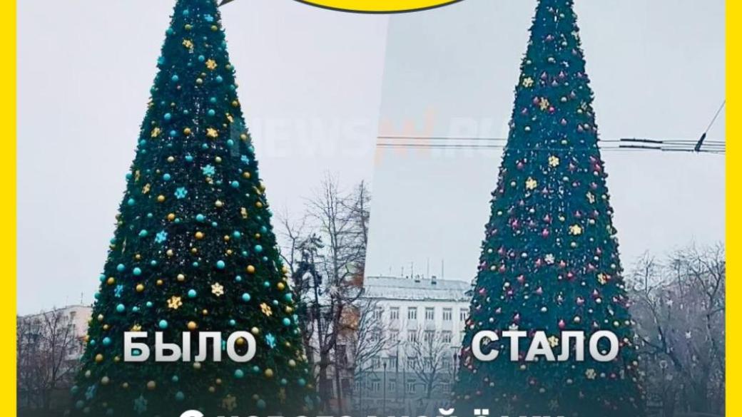 Ёлку на площади Горького установили в конце ноября, а для украшения использовали шарики голубого и жёлтого цветов. Об этом пишет ТГ-канал рф «Ешкин Крот».