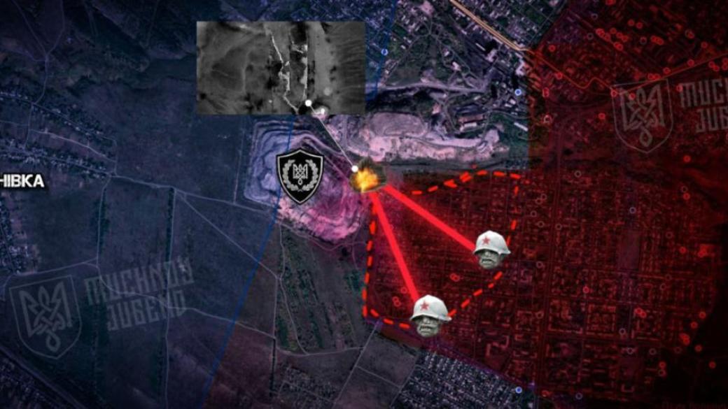 «Торецкое направление: враг приступил к штурму терриконов шахты «Центральная». Наши смогли положить группу противника, но факт остается фактом, на снимке я обозначил, где спрятался россиянин, которого убили сбросом, именно возле этого террикона! Сейчас восстанавливается активность вражеских сил, и они начнут дожимать. Если возьмут над шахтой контроль, то устойчивость наших подразделений здесь просядет, что упростит задачу противнику продвигаться дальше», - пишет украинский защитник.