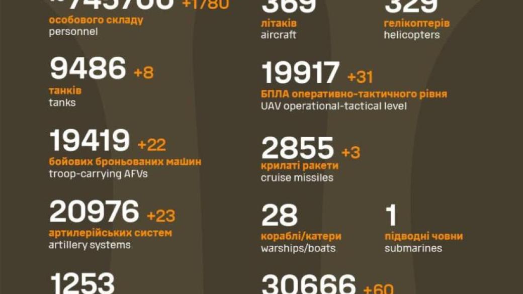 За прошедшие сутки было ликвидировано 1780 оккупантов и 155 единиц техники и вооружения врага.