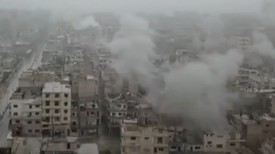 Страшный обстрел города Маарет-ан-Нуман в Идлибе, что на северо-западе Сирии засняли на видео. На жилые кварталы ложились бомбы выпущенные с помощью военной авиации.