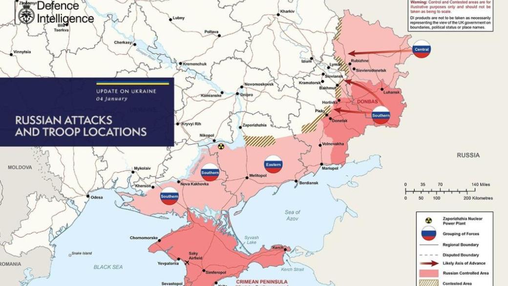 В британской разведке уточнили, что центр боевых столкновений сейчас находится на Донбассе. Также уточняется, что российские войска не перестают штурмовать позиции украинских защитников в районе Бахмута, Авдеевки, Соледара и Песок.