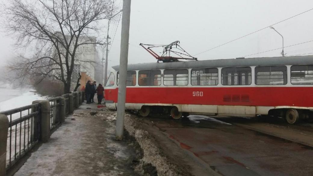 Во временно неподконтрольном украинскому правительству Донецке трамвай с пассажирами внутри сошел с рельсов. Об этом сообщают очевидцы в социальных сетях.