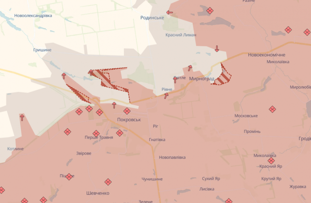 Оккупанты продвинулись в городах Покровск и Мирноград. Об этом сообщили аналитики DeepState.