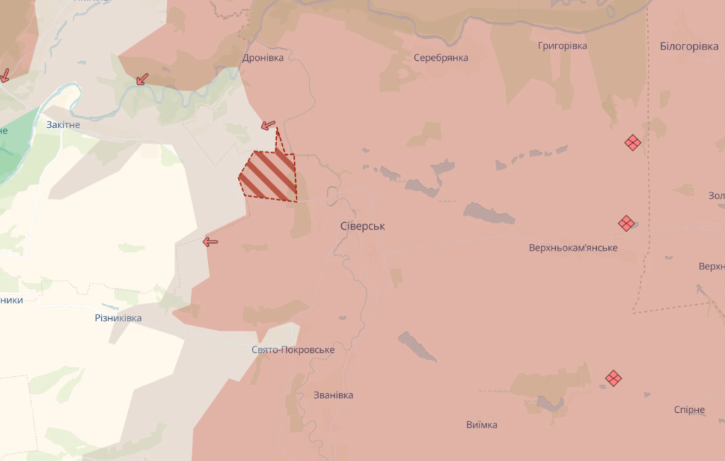 Также аналитики зафиксировали продвижение россиян возле Северска.