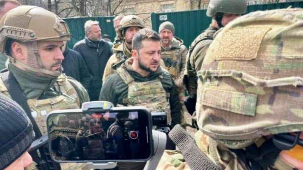 Президент Украины Владимир Зеленский сегодня посетил освобожденный от военных РФ город Бучу Киевской области, где обнаружены свидетельства массовых убийств мирных жителей. Также он осмотрел дорогу с уничтоженной российской техникой и пообщался с местными жителями.