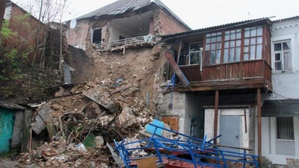 В результате обвала этой стены были разрушены два кирпичных гаража, еще один поврежден. Также частично разрушена пристройка к дому по ул. Фрунзе, и полностью разрушена деревянная лестница, ведущая на второй этаж где проживает семья с тремя детьми. Они эвакуированы и находятся у родных.