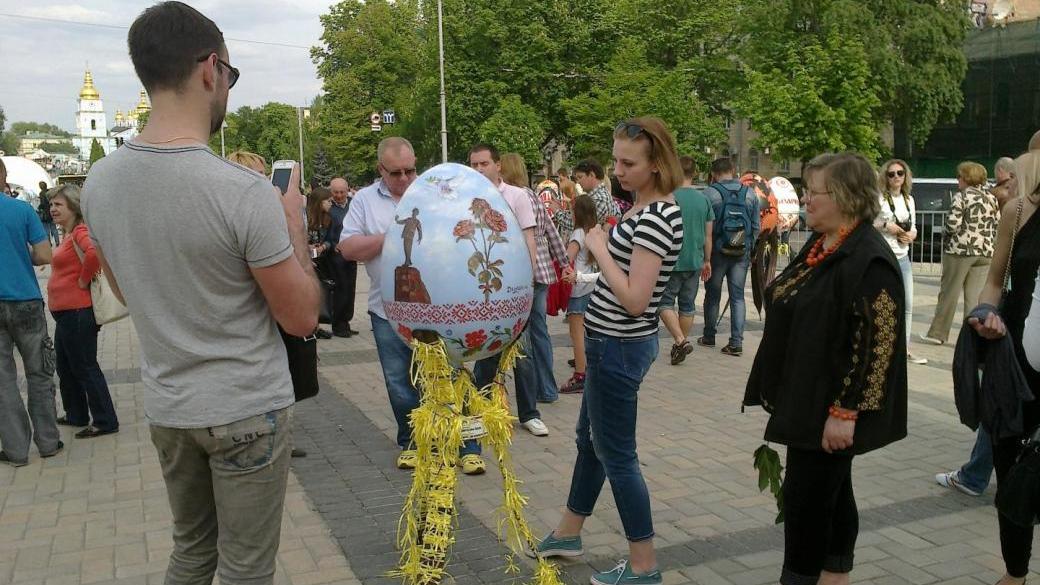Переселенка из Донецка Таисия Другакова представила свою работу на Всеукраинском фестивале писанок в столице Украины. Каждый участник получил одну заготовку яйца из стеклопластика высотой 670 мм и шириной 520 мм, подставку и акриловые краски. Таисия же решила, что темой ее росписи будет Донецк, она изобразила несколько узнаваемых символов города.