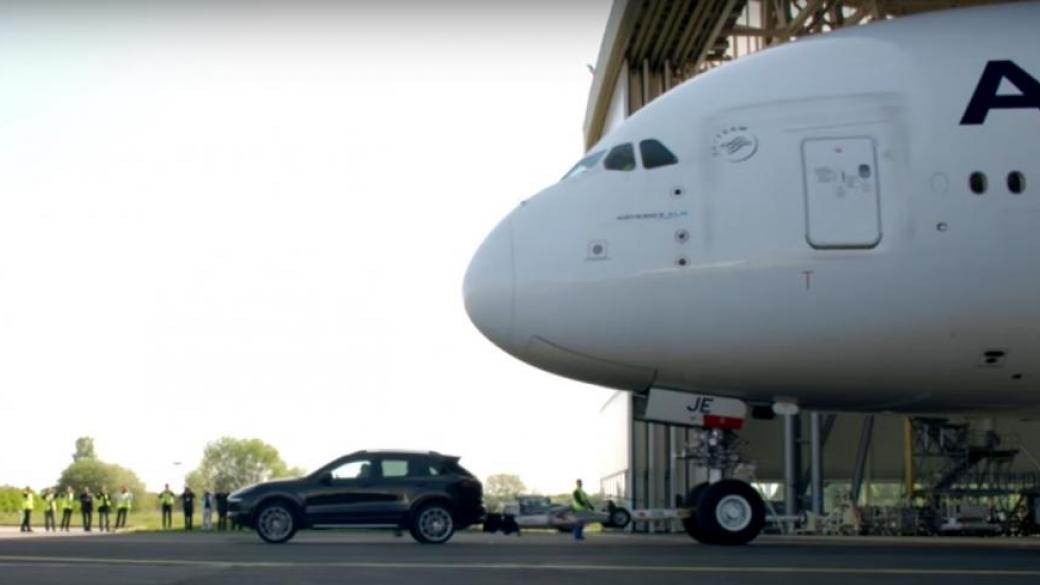 Отмечается, что дизельный «Cayenne S» мощностью 385 л.с. преодолел 42 м с 285-тонным самолетом Airbus A380 на буксире.