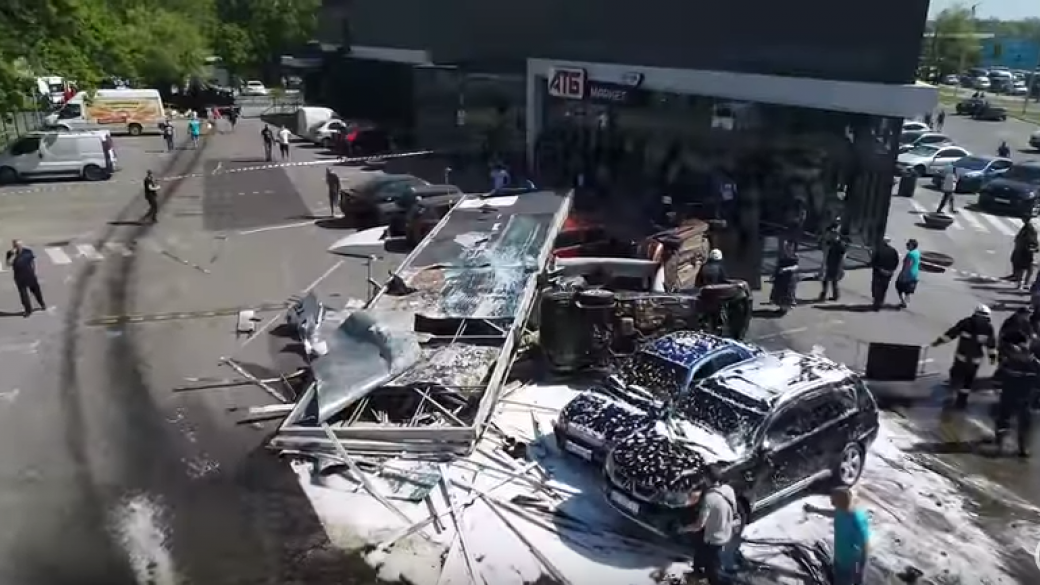 Перед массовым ДТП, произошло первое столкновение с авто Renault, водитель которого погиб на месте от полученных травм. Затем грузовик столкнулся с рекламным щитом и 12 легковыми автомобилями на парковке. Пострадали 6 человек, 1 погибший, 3 госпитализированы, 2 отказались от госпитализации.
