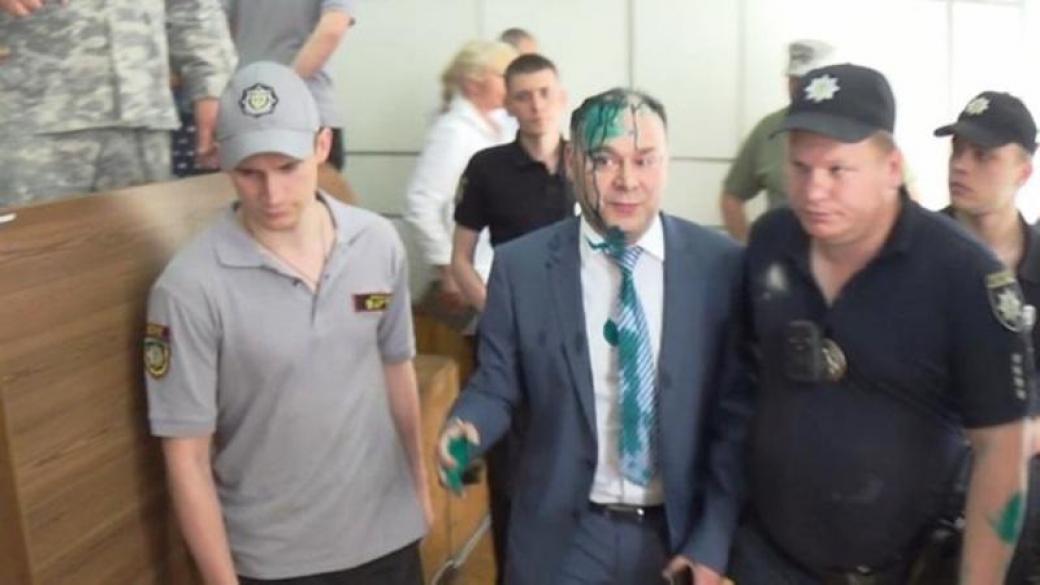 После этого активисты поднялись на трибуну и, по словам очевидцев, надели депутату Александру Рыбакову на голову пакет с кефиром, а мэра Андрея Фисака облили зеленкой.