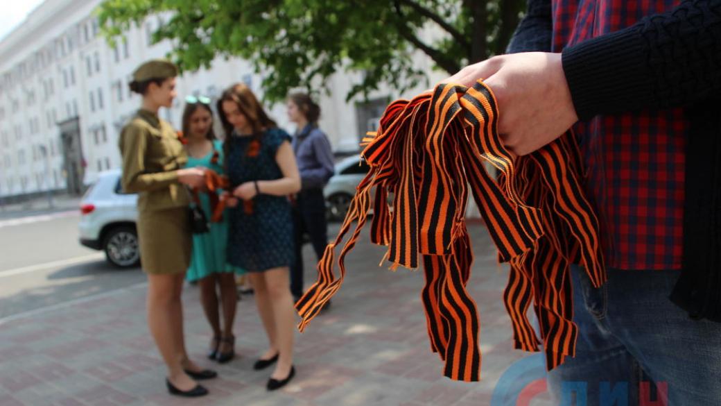 Сегодня на улицах Луганска и других неподконтрольных украинской власти городов было роздано более 5 тысяч «георгиевских ленточек» из 10 тысяч запланированных.
