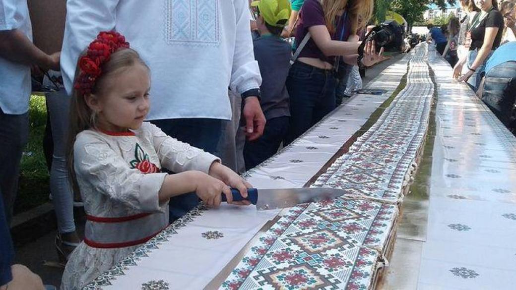 В Тернополе кондитеры изготовили торт-вышиванку длиной 102,9 метра, который признан рекордом Украины. На сегодняшний день длина торта признана рекордной в Украине, по информации страницы Facebook руководитея Национального реестра рекордов Украины Лана Ветрова.
