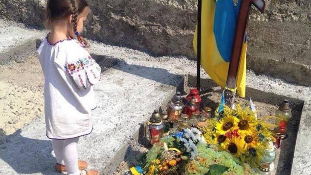 Снимок девчушки, которая склонив голову стоит у могилы отца, разместила на своей странице в соцсети Facebook продюссер Алена Мозговая.